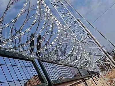 刀片滾籠由熱鍍鋅鋼板或不銹鋼薄板沖壓出尖銳的刀片狀,高張力鍍鋅鋼絲或不銹鋼絲做芯線組合而成的阻絕器材。由于刺網(wǎng)造形獨特不易觸摸,因而能好的隔離防護(hù)效果。產(chǎn)品的主要材質(zhì)有鍍鋅板和不銹鋼板。